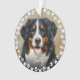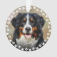 Un adorno mascota personalizado para los amantes del perro o del gato. Este diseño presenta una foto y el nombre de su amigo peludo en la parte delantera y trasera con un lindo y moderno marco circular de huellas de pata y corazones. Esto será perfecto como regalo personalizado.