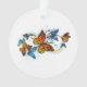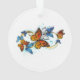 Symbol infinity made of gold, decorated with realistic orange and blue on a white background. Butterfly morpho and Monarch. Design with butterflies.