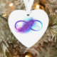 Infinity symbol with a beautiful feather painted in purple and blue bright colors on white background.