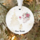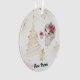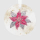 La parte trasera de este ornamento navideño de peso ligero también tiene una Poinsettia Roja con polvo de oro y estrellas de oro.