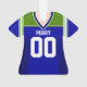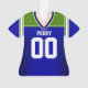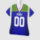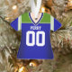 Personaliza este adorno de jersey azul, verde y blanco para tu aficionado al fútbol favorito.