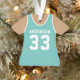 Celebra tu estrella de baloncesto con este adorno verde azulado personalizado de la jersey de baloncesto. Perfecto para conmemorar una temporada especial, jugador o equipo. Personalizar con un nombre y un número para crear un keepsake único.