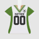 Personalice este divertido ornamento de camiseta de fútbol verde y blanco cambiando el nombre y el número. El regalo perfecto para cualquier hincha de fútbol o jugador de fútbol.