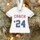 Conmemorar una temporada impresionante para el entrenador de béisbol de sus hijos con este adorno personalizado genial en una colorida azul marino, rojo y blanco. Personalice el frente con el año, con "entrenador" arriba, y añada más detalles a la parte trasera, incluyendo el nombre del entrenador, nombre del equipo o liga, temporada y la lista del equipo.