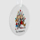 ¡Una figura adorable ornamento de acrílico del palillo del día de fiesta del navidad ofrece el frente con la figura familia del palillo de tres incluyendo el papá, la mamá, un muchacho en casquillo de la bola, y el perro de la familia delante del árbol adornado del día de fiesta con un área que usted puede añadir su apellido! El ornamento detrás ofrece el mismo diseño con un área que usted puede modificar para requisitos particulares fácilmente para decir navidad 2014 o el año en curso. ¡Esta figura linda ornamento de acrílico del palillo de la familia es un gran regalo para la familia y los amigos y por supuesto, un gran recuerdo para sí mismo de sus vacaciones al tesoro por próximos años!