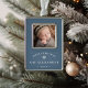 Un hermoso diseño clásico para conmemorar la primera Navidad del bebé, con una foto favorita en un panel de entrada. Personalice con el nombre del bebé en letras clásicas del serif, junto con el año, en un polvoriento fondo azul con un solo acento de copo de nieve.