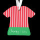 Rayas rojas y blancas en la camisa verde con adorno de fecha de nacimiento para la primera Navidad del bebé. Nombre en una cara, fecha en la otra.