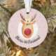 Este adorable diseño de 'suéter feo' incluye una princesa de color agua "Rudolph the REindeer", así como doodle árboles navideños y espacio para personalizar el objeto usando el nombre de su bebé. ¡Perfecto para la primera Navidad de tu bebé!