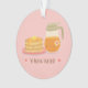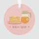 Un ornamento rosado con un doodle lindo de las crepes y del jarabe de arce, el apareamiento de la comida que es perfecto junto. El texto nos lee "es perfecto junto!" con dos corazones.
