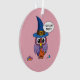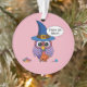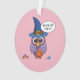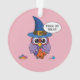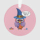 Un personalizado adorable búho que hace truco o trata en Halloween. El búho violeta lleva puesto un gorra mago y grandes anteojos rojos redondos y tiene un cubo naranja de linternas llenas de caramelos. Ideal para Halloween.