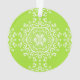 Esta mandala blanca se sienta sobre un fondo verde lima. Los colores son enérgicos y luminosos. Parte de la colección Losonieth Mandala.