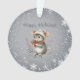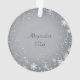 Un lindo ratón gris vestido para el invierno con un gorro y una bufanda sostiene bayas y te desea “Felices Fiestas”. Está rodeado de un diseño de copo de nieve blanco. El saludo se puede cambiar fácilmente a lo que prefieras.