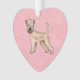 El original ilustracion personalizado de Destei de un lindo perro de la raza de Wheaten Terrier recubierto suave. El perro está parado con la cabeza puesta hacia el espectador. Típico de la raza los ojos del perro están cubiertos de pelo y la cola del perro está apuntando hacia arriba. El color de fondo es rosa con una textura decorativa clara que se puede eliminar si se desea. En el otro lado hay un área de texto personalizable para un nombre u otro texto personalizado.