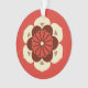 Ornamento acrílico de diseño mandala japonés que representa una flor de loto estilizada, simbolizando pureza, despertar espiritual y fidelidad - flor en mandarina naranja, crema, chocolate marrón y oro en un fondo mandarín naranja