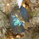 luciérnagas de vapor con alas transparentes azules y bombilla verde sobre fondo gastado, marrón y texturado. Estilo Steampunk.