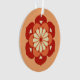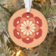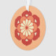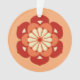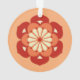 Ornamento acrílico de diseño mandala japonés que representa una flor de loto estilizada, simbolizando pureza, despertar espiritual y fidelidad - flor en naranja de mandarina profunda, naranja medio y crema en un suave fondo naranja pastel