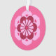 Diseño de mandala japonés en ornamento acrílico que representa una flor de loto estilizada, que simboliza pureza, despertar espiritual y fidelidad: flor en rosa suave, burdeos y rosa intenso sobre fondo rosa fucsia