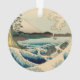 Esta vintage huella japonesa de madera de 1858 se llama El mar en Satta en la provincia de Suruga, por Ando Hiroshige. La hermosa impresión está tomada desde las 36 vistas al Monte Fuji, una famosa huella japonesa de madera en color.