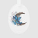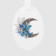 Mariposas morfo azules con alas detalladas se sientan sobre una media luna de madera decorada con plantas silvestres sobre fondo blanco. Morfo de las mariposas azules.