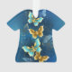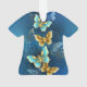 Composición de vuelo, joyería, oro y mariposas oscuras sobre fondo de joyería texturada. Mariposa dorada.
