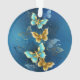 Composición de vuelo, joyería, oro y mariposas oscuras sobre fondo de joyería texturada. Mariposa dorada.