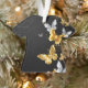 Oro, joyas y mariposas blancas sobre fondo negro. Mariposa dorada.
