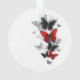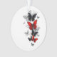 Montón de mariposas voladoras, realistas, rojas y negras morfo sobre fondo blanco con gotas de pintura.