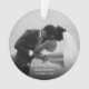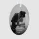 Casado Feliz Primera Navidad Ornamento de foto blanca negra. El diseño presenta una foto en blanco y negro personalizable a cada lado. Casado y Feliz delante y Primera Navidad en la parte trasera de este adorno de vacaciones. Este elegante diseño moderno se puede personalizar pulsando en el botón "Personalizar". Los pedidos de personalizados están disponibles en truullc@gmail.com.