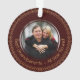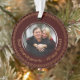 Elegante, moderno, rojo oscuro, mejor ABUELOS Ornamento de Navidad, mostrando una foto de personalizable en el centro - sube tu propia foto (cuadrada) - y alrededor del borde está el texto de personalizable que dice MEJORES ABUELOS - TODO EL AÑO, que puedes reemplazar con tu propio mensaje, por ejemplo. PRIMERA NAVIDAD. Los bordes están decorados con finos contornos en baudible de color dorado. El diseño se repite al revés. Disponible en otros colores.
