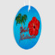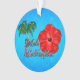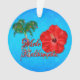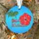 Mele Kalikimaka es hawaiano para las Felices Navidad. Celebre el navidad caliente agradable de una playa. Mele Kalikimaka adornado con los ornamentos del navidad y los bastones de caramelo. El navidad adornó la palmera y un hibisco rojo del día de fiesta florece.