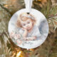 Un hermoso homenaje de recuerdo de una bebé ángel para la primera Navidad sin ellos. Un bebé de ángel con alas, texto delicado y colores. Back tiene un fondo de papel estrellado
