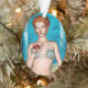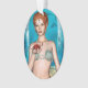 Hermosa sirena sosteniendo un erizo invertebrado oceánico sobre el fondo azul de fantasía oceánica. Un regalo perfecto para todos los amantes de los cuentos de hadas y la fantasía