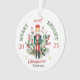 Bring timeless holiday charm to your tree with this Merry & Bright Christmas 2025 Personalized Name Ornament. This glossy acrylic has a modern, light-catching look featuring a classic nutcracker soldier standing among festive holly, pine greenery, and red berries. This design captures the spirit of the season in rich traditional colors of red, green, and gold. The elegant typography highlights “Merry & Bright Christmas 2025,” accented with sparkling gold stars for a magical touch.