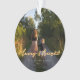 Merry & Bright, golden yellow neon sign lettering, family photo holiday ornament. Festive blue background color and neon star pattern backing.