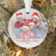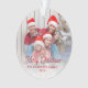 Difunde alegría de vacaciones a amigos y familia con este adorno de keepsake moderno. El texto rojo dice "Feliz Navidad" en un elegante guión retro de escritura a mano. Reemplace la imagen de ejemplo con su foto favorita y agregue su nombre familiar y el año. Un filtro de degradado blanco ayuda a hacer que el texto aparezca.