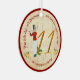 Celebrate the 11th Day of Christmas with this joyful “Eleven Pipers Piping” ornament from the Twelve (12) Days of Christmas collection. The design features a charming watercolor piper playing his flute beside a large gold “11,” symbolizing music, praise, and celebration. Behind him, softly faded parchment sheet music creates a harmonious vintage backdrop, framed by a festive red circle. Across the top arches the familiar carol line, “The 11th day of Christmas my true love gave to me,” while “eleven pipers piping” curves elegantly along the bottom, each phrase divided by tiny golden pears to echo the rhythm of the entire series.