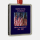 250º Aniversario 1776 a 2026, Estados Unidos de América, Ornamento de Árbol de Navidad. ¡Un gran hito para Estados Unidos! Foto de banderas norteamericanas ondeando en el viento, y texto patriótico hacen de esto un maravilloso keepsake - ¡un acontecimiento de una vez en la vida! Gran Navidad adorno metalizado cuadrado premium. Todos los derechos reservados © 2025 Alan & Marcia Socolik.