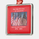 250º Aniversario 1776 a 2026, Estados Unidos de América, Ornamento de Árbol de Navidad. ¡Un gran hito para Estados Unidos! Foto de banderas norteamericanas ondeando en el viento, y texto patriótico hacen de esto un maravilloso keepsake - ¡un acontecimiento de una vez en la vida! Gran Navidad adorno metalizado cuadrado premium. Todos los derechos reservados © 2025 Alan & Marcia Socolik.