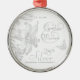 Ornamento de encargo exquisito del árbol de navidad del recuerdo del aniversario de bodas de plata de los lirios de la mariposa en los gris plateados elegantes (tinta no metálica) en blanco.