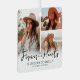 Elegante adorno conmemorativo de keepsake con 3 fotos especiales de la persona que recuerdas, el encabezado 'para siempre en nuestros corazones', su nombre y fechas de nacimiento/muerte.