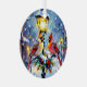 A beautiful Christmas ornament with an impasto style ai illustration of a female and male cardinal sitting on a lamppost on a snowy winter night. A back drop of a cute festive street and village. On the back of the ornament you can add your own custom message and family photo in the personalize area.