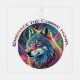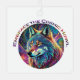 'Abraza el aullido cósmico' lobo psicodélico. Colorido y llamativo, este metalizado adorno tiene un lobo con colores cósmicos que se revolcan por ahí. Un recordatorio trippy y espiritual para permanecer fiel a los valores de la naturaleza. Contiene contenido generativo.