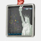 Poster de viajes vintage por volar Northwest Airlines a Nueva York, mostrando la Estatua de la Libertad y el estilizado horizonte de la ciudad de Nueva York.