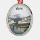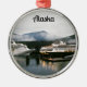 Hermosa foto de barcos de crucero atracados en Alaska, con la niebla levantándose de las montañas en el fondo. Palabra: "Alaska" está en diseño. ¡Maravilloso recuerdo de unas vacaciones especiales en Alaska!