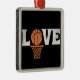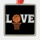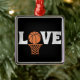 Diseño de texto de estilo retro grunge "Amor" con decoración de baloncesto naranja y red de baloncesto
