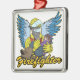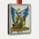 ¡Bombero con alas en el engranaje del fuego que detiene a una niña rescatada! ¡El chica se sostiene sobre la máscara de los bomberos y es agradecido para su héroe! ¡El ángel del bombero con las alas hermosas, bomberos es héroes! ¡Ornamento del cuerpo de bomberos!