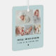 5 fotos modernas en una cuadrícula que muestran tus fotos favoritas de recién nacidos con nombre y estadísticas de nacimiento adorno de metal azul verde teñido.
