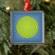 Moderno y de mediados del siglo XX Rebrote de sol abstracto con un efecto sedoso y gradiente - verde de cal brillante sobre un suave fondo azul denim, acentuado con plata