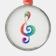 Tecla musical extraída de capas multicolores de colores arcoiris sobre fondo blanco.