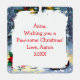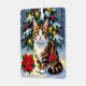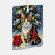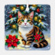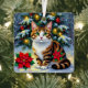 Adorno navideño con gato temático adorable con un hermoso gato atigrado con poinsettias rojas y fondo de árbol de Navidad nevado. En la parte posterior puedes agregar tu propio mensaje personalizado.